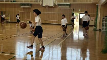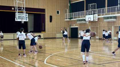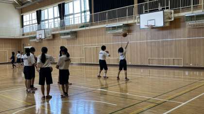 体育館で、バスケットボールのシュート練習とボール遊びを行いました。なかなかシュートが入りません(≧∇≦)
