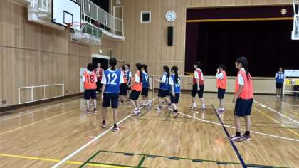 シュート練習の後は、4チームに分かれて2分間のゲームを行いました。