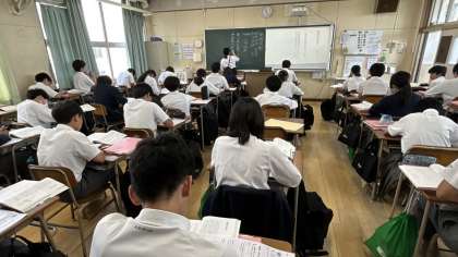 現在、本校では教育実習が行われています。2年生の国語の授業では、現場の先生方が参観に入り、実習生にアドバイスを送るなど、将来の先生の卵を大切にしています。