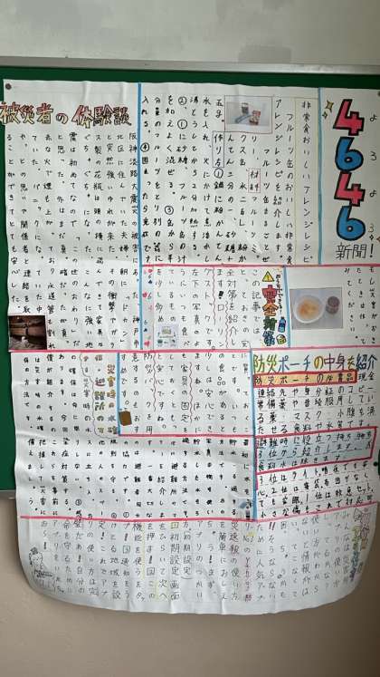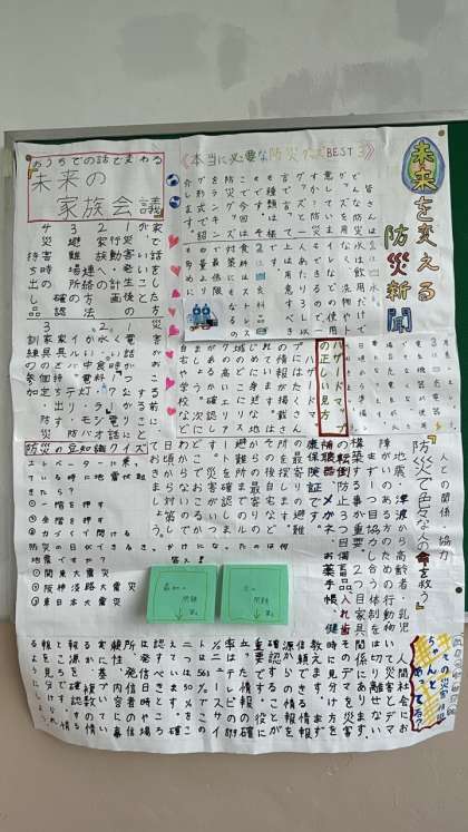 2年生が、防災学習の取り組みの一環で、防災新聞を作成しました。