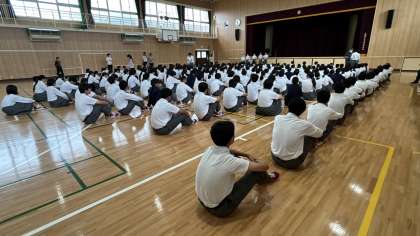 今日は木曜日ですが、全校集会を開きました。明日で3週間の教育実習を終える、実習生の挨拶があるためです。