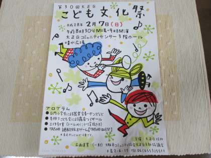 本日、午前9時より、コミュニティーセンター及び噴水広場で、「こども文化祭」が開催されます。小学生のパワー、楽しみです!