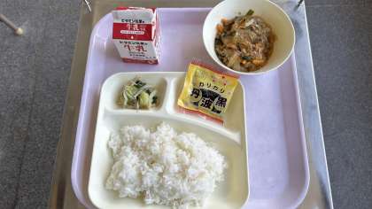 中華風の給食となりました。青梗菜(チンゲンサイ)にはカロテンやビタミンCが多く含まれています。カロテンやビタミンCは風邪の予防に効果が期待されています。今日は鶏肉の唐揚げがついています。野菜もたくさん食べてくださいね。