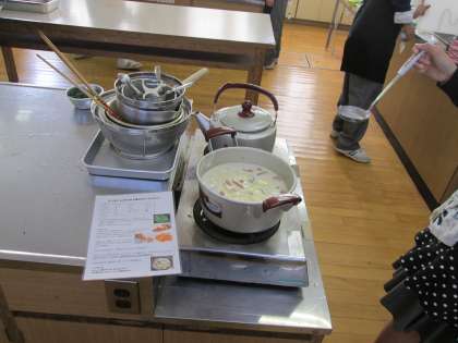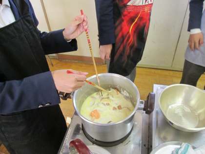 そして、ほうれん草の緑が入ると、一気にシチューの出来上がりです。