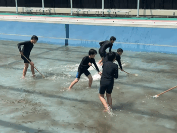 手伝ってくれたのは、男子バスケットボール部の皆さんです。広い広いプールですが、丁寧に?掃除をしてくれました。