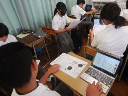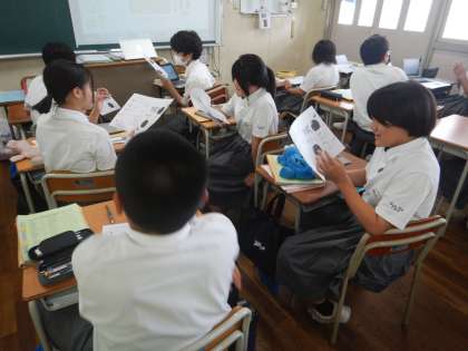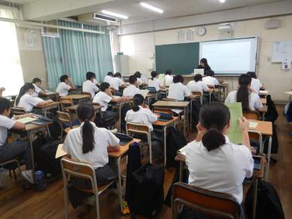 1年生の英語の授業で、ハンバーガー屋に行った時の注文を、英語で店員さんとやり取りする練習を行いました。