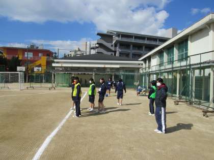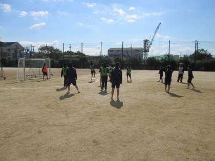 お天気の中、グラウンドでミニサッカーを行っています。
