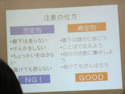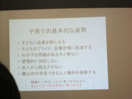 視点を変えてみる、自信を持たせることの大切さ、自尊感情、肯定的な注意の方法など、特別支援教育を長年研究調査されてきた中で、鋭い答えを提示していただきました。