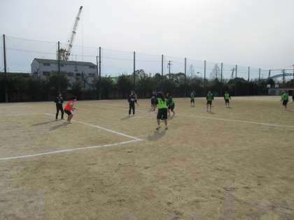 種目はサッカーで、インサイド・インステップキックの練習の後、試合に入りました。