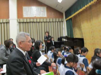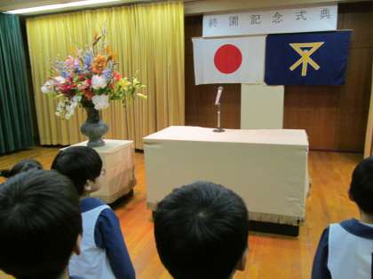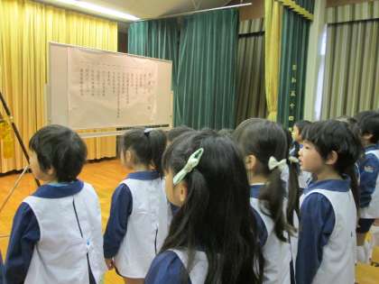 開式のことばのあと、国歌斉唱・市歌斉唱で、園児さんの大きな声が響きました。