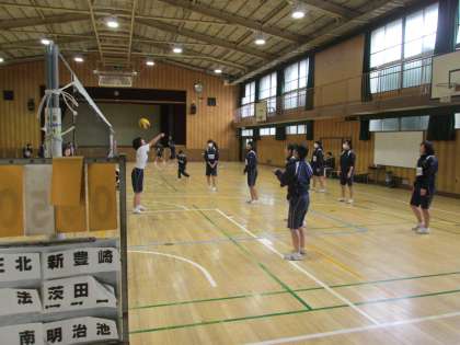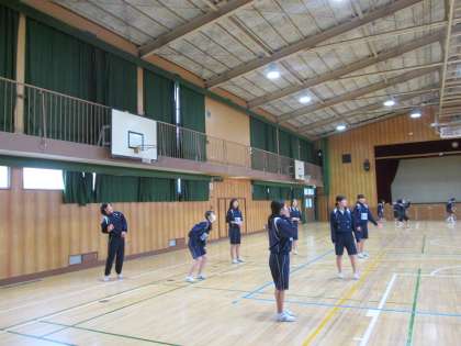 女子は体育館でバレーボールとバドミントン。