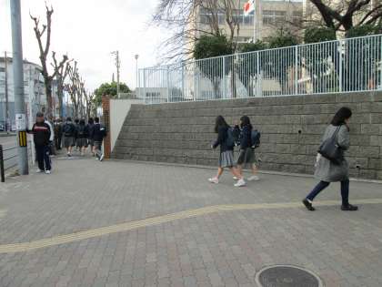 生徒たちは寒さに負けることなく、元気に登校しています。