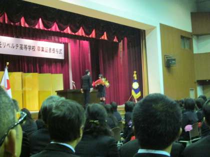 そして、クライマックスの卒業生の答辞は感動的で、涙をぬぐう生徒たちが・・・。