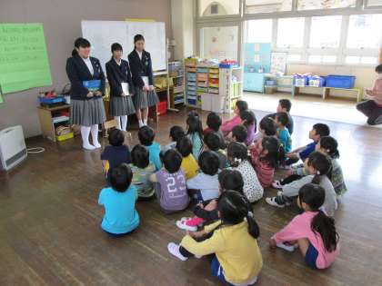 本日、本校の文芸部が、お隣の泉尾幼稚園へおじゃましました。