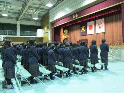 男子生徒が、3年間の思い、まわりへの感謝、そして、友だちの大切さを心を込めて述べ、生徒たちや先生方、保護者の涙を誘いました。