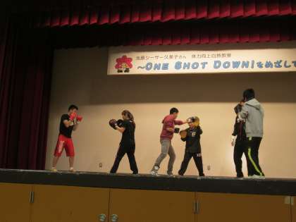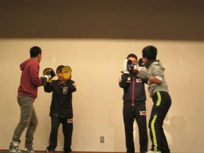 みんな初めての経験。チャンピオンのように、鋭い音は出ませんが、ミットめがけて力を入れます。