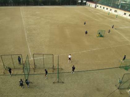 今日は、ソフトボール部とソフトテニス部が練習をしています。