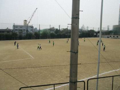 グラウンドでは1年の体育。サッカーの授業です。