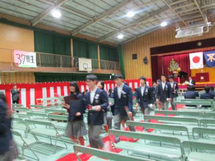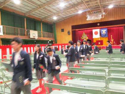 吹奏楽部の演奏と、拍手の中を、卒業生が退場していきます。