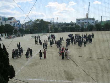 グラウンドで記念撮影をするひととき。 これも卒業式の風物詩です。 良い記念になることでしょう。 そして、PTA7役員の皆様から、教職員に向けてご挨拶をいただきました。 3名の役員様はお子様も卒業で、今年度で任期が終わります。 万感の思いのようでした。ありがとうございました。