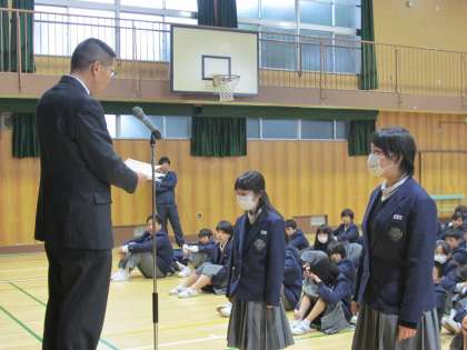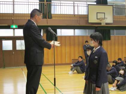 先日の送る会では全員に、卒業式では代表生徒として頑張ってくれた諸君に感謝します。ありがとうございました。
