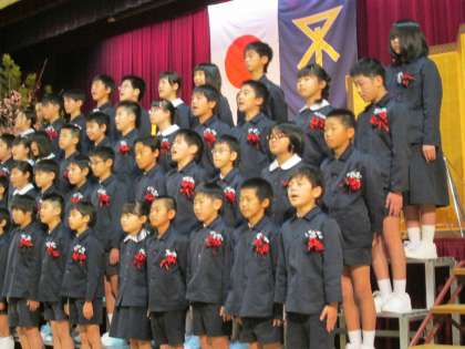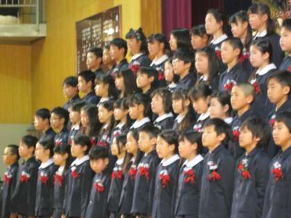 卒業生がひな壇に上がり、「卒業生・在校生 別れのことば」です。