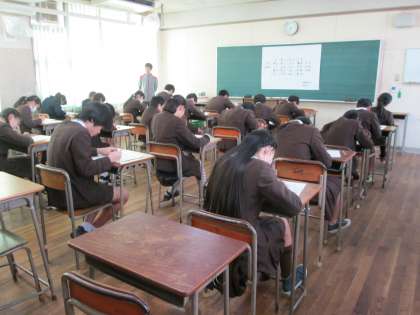 昨日、油引きをしたので、プンと匂いますが、学校・クラス別で問題に取り組んでいます。