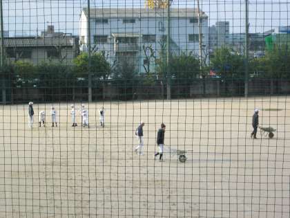 本日、グラウンドは地域のソフトボール。少年たちも続々と・・・。