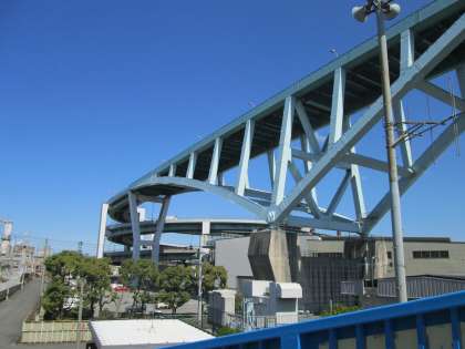 新木津川大橋です。ループで昇り、一気に住之江区に到着することができます。