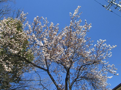 近くの平尾公園では、早咲きのサクラが! お見事!