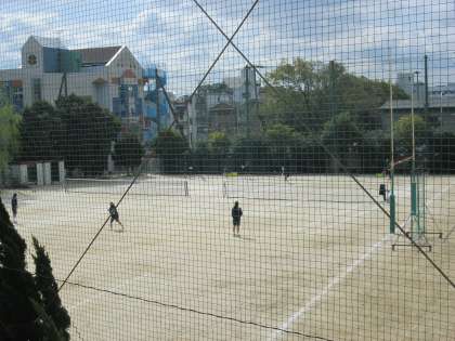 グラウンドでは、ソフトテニス部、野球同好会が活動しています。