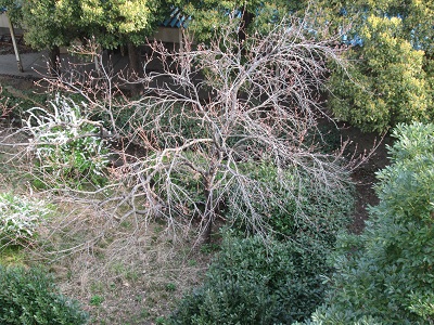 中庭奥の桃の花、蕾が膨らみました。