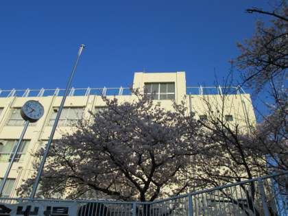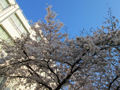 淡いピンクと、白い校舎、そして、抜けるような青空。