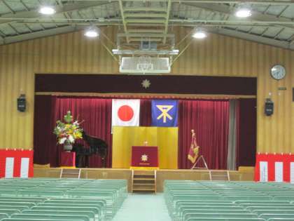 式場となる体育館。舞台は整いました。