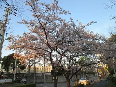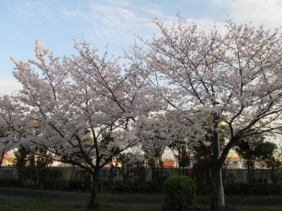 夕陽に輝く夕刻の桜、見ごたえがあります。