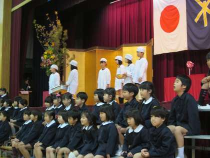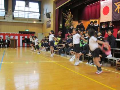 大きな声の喜びのことばとともに、給食など小学校生活の紹介やパフォーマンスが始まりました。