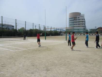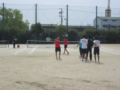 硬式テニス部では、顧問の先生からストロークについて、的確なアドバイスと励ましが!