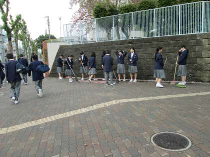 今朝は吹奏楽部が、正門の掃除をしてくれました。感謝!
