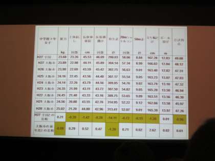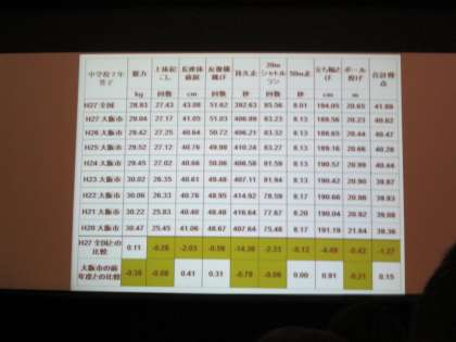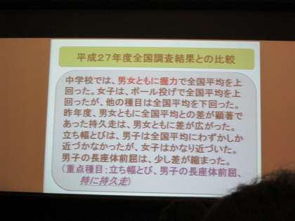 全国調査は学力と体力。昨年度の体力調査がまとまり、説明会が行われました。