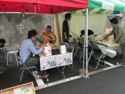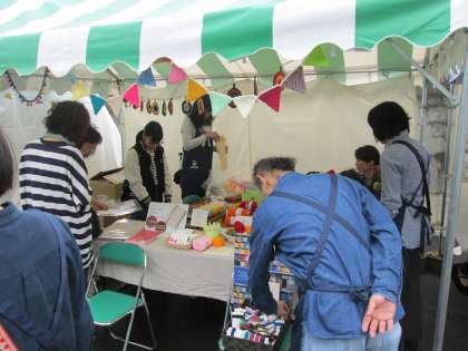 スタッフの皆さんは、お揃いの「つなぎ」で動いています。風が強く大変ですが、晴れ間も出てきて賑わっています。