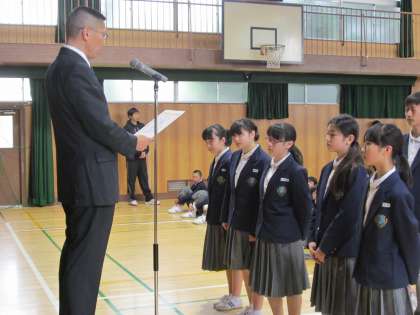 バドミントン部、女子バレーボール部、硬式テニス部が活躍し、賞状をいただきました。