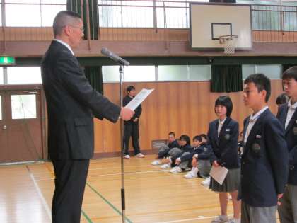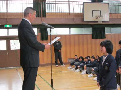 さて、4月も下旬となり、1年生は中学校生活にだいぶ慣れたと思います。また、2年生は、後輩ができて、先輩としての自覚が出てきたのではないでしょうか。そして、3年生。明日は早速、全国学力・学習状況調査のテストですが、授業に対する意気込みは変わりましたか。この気持ちが息切れしないように、努力してください。