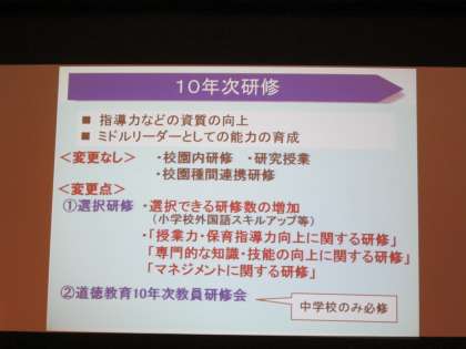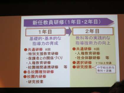 資質向上を目指す教員を数多く育てるため、様々な研修が取り入れられています。