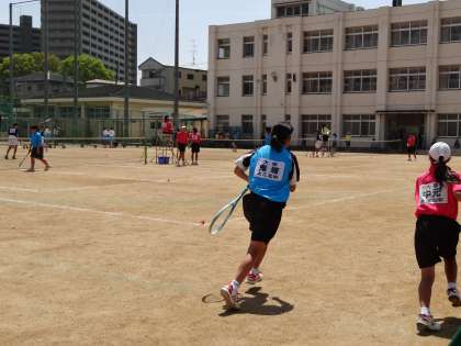 昨日、大正東中学校で行われたソフトテニス部の大会です。