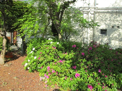 区のはなであるツツジ。そして、緑の映えるモミジ。