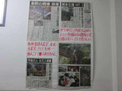 平穏な生活を送る我々は、新聞やニュースを目の当たりにし、命の尊さはもちろんのこと、地震の怖さと避難や防災について学ばなければなりません。