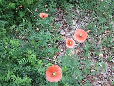 「ポピー」・・・学校のあちこちに、そして、歩道付近にも。その小さな可愛らしい顔をのぞかせています。「ひなげし」とも呼ばれます。