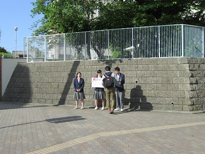今朝も、生徒会役員によって、熊本地震の募金活動が展開されました。