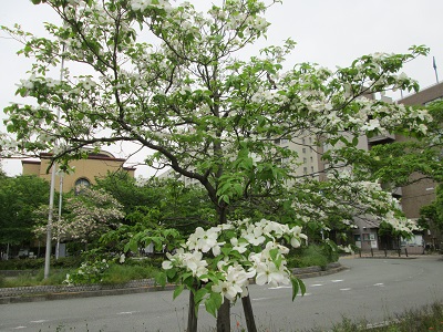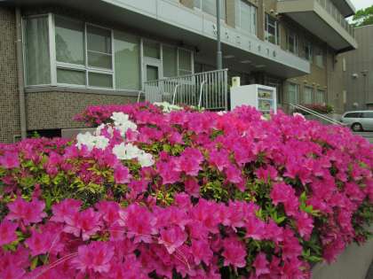 大正区役所2階玄関前のツツジが満開を迎えています。