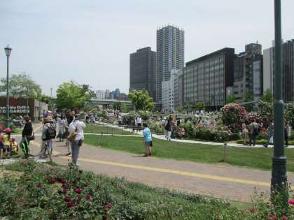 バラ園は市民の憩いの場。